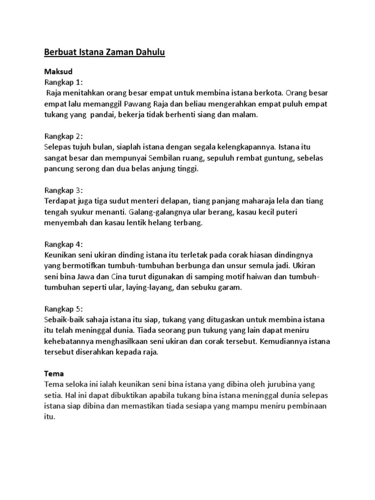 Berbuat Istana Zaman Dahulu Tema Maksud Persoalan Nilai